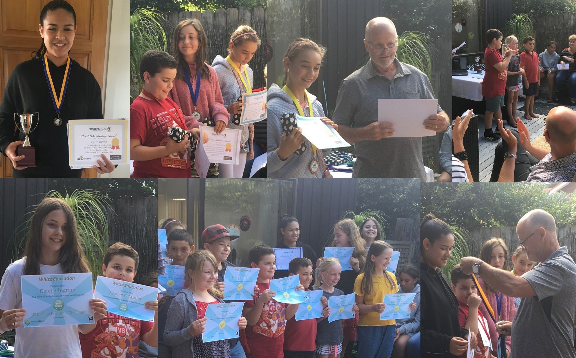 The photo shows some of the students with their Progress and Achievement certificates.